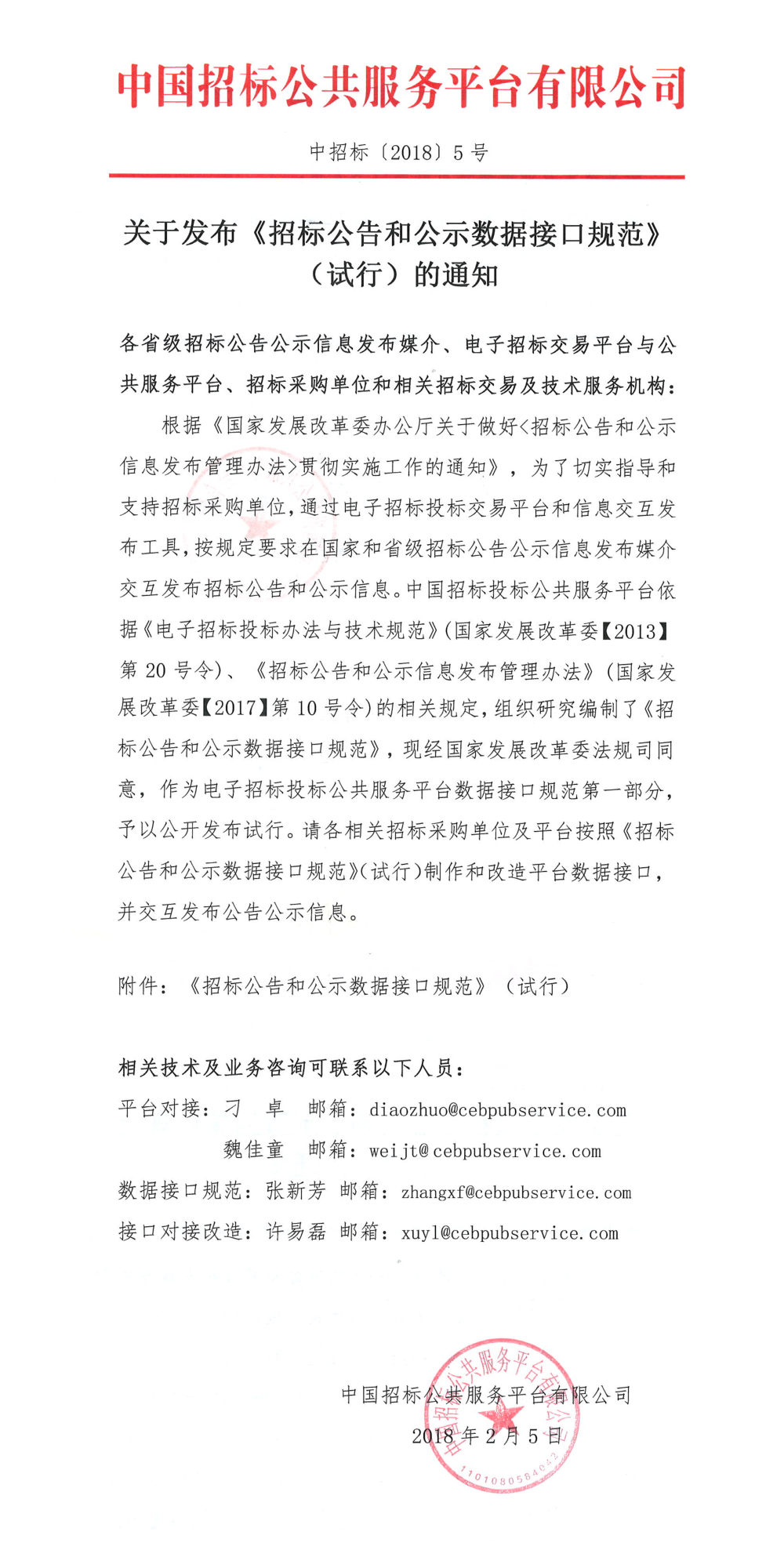 关于发布《招标公告和公示数据接口规范》(试行)的通知